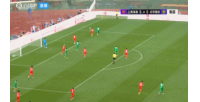 比赛第12分钟,国安新援恩科洛洛右路传中,法比奥、张玉宁抢点都没碰到,皮球滑着右侧立柱出了底线。