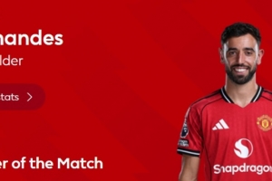 传射建功主导逆转,英超官方:B费当选曼联2-1水晶宫全场最佳
