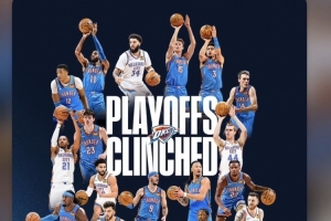 本场过后,雷霆成为本赛季联盟第一支已锁定季后赛席位的球队。