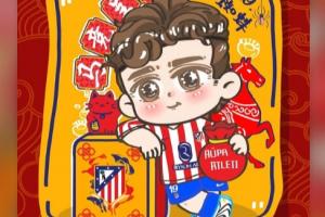 马竞元宵节晒中文海报送祝福,阿尔瓦雷斯社媒转发