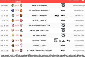 体育资讯4月4日讯 西甲官方公布了第32轮比赛的开球时间,4月25日3点贝蒂斯vs皇马,4月25日22点15分赫塔费vs巴萨。