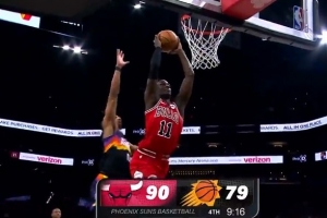 GIF-河村勇辉长传助攻伦纳德·米勒快攻双手暴扣